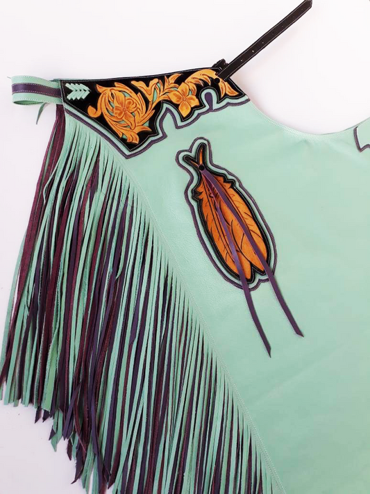 CHAPS DOUBLE FRINGE - LIGTH GREEN AND PURPLE - BULL RIDING